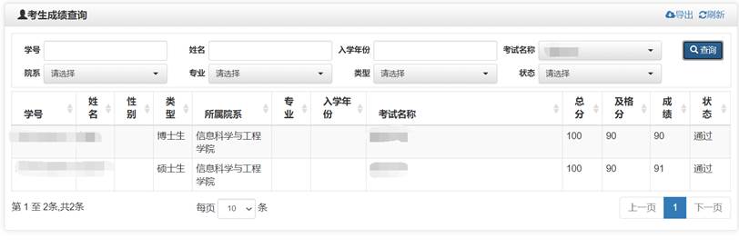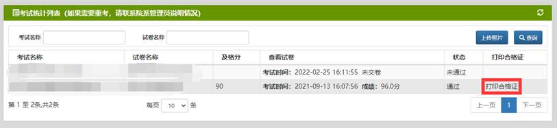 學(xué)生可以查看個人成績,通過的考試可打印合格證。