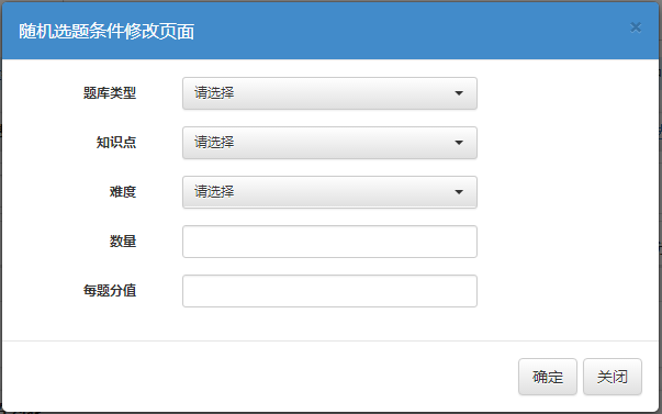 4. “隨機選題條件列表”可以根據(jù)自己的測試要求進(jìn)行條件選題,并設(shè)置題數(shù)。(此項設(shè)置每個學(xué)生的試卷都是隨機生成的,難度及所要掌握的知識點都是一致的)
