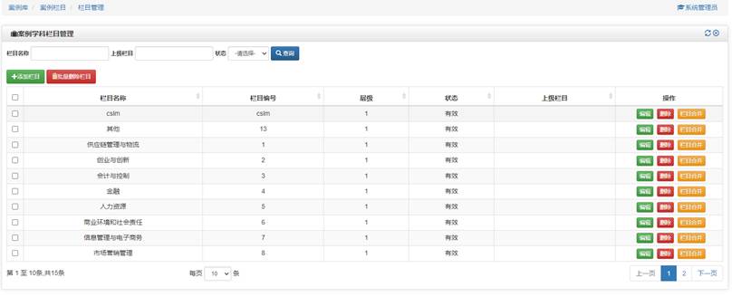 基礎(chǔ)信息包括案例學(xué)科分類欄目管理,案例投稿相關(guān)政策法規(guī)文件的上傳、案例基本相關(guān)信息數(shù)據(jù)字典維護等。