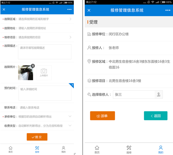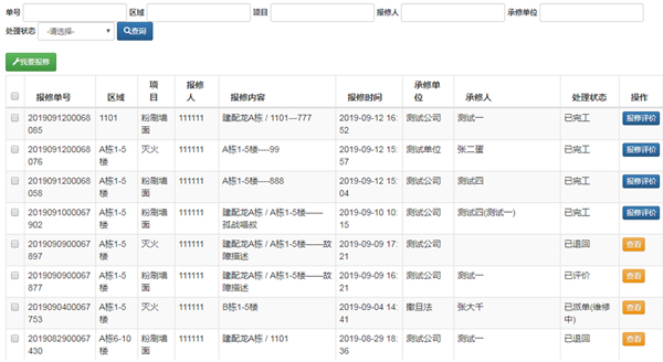 提供報修、受理、派單、維修、評價全過程的管理服務平臺;