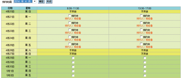 系統(tǒng)可設(shè)置統(tǒng)一的開放計(jì)劃模板,大部分儀器用統(tǒng)一的模板設(shè)置開放計(jì)劃,特殊儀器也可以設(shè)置個(gè)性化的開放計(jì)劃,如以半小時(shí)為單位進(jìn)行預(yù)約。