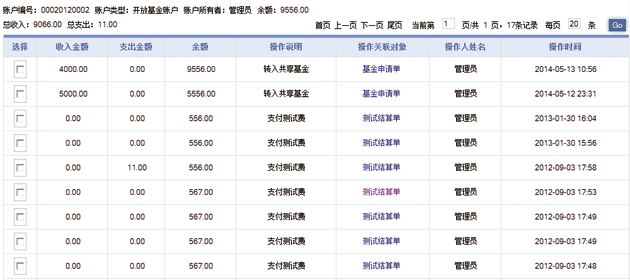 系統(tǒng)支持傳統(tǒng)的后付費(fèi)模式,測(cè)試后可打印出結(jié)算單;也可以建立預(yù)付費(fèi)賬戶,預(yù)先充值,賬戶余額不足時(shí)就不允許預(yù)約,可查看賬戶的資金流水。